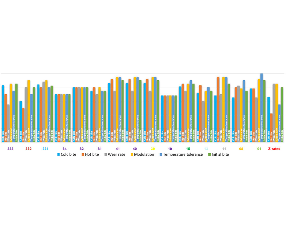 11 compound is a new generation sprint and medium distance friction providing the ultimate in control, with superior disc conditioning. 11 compound was developed from the 01 compound with improved bite, modulation, and release characteristics. Good fade resistance & easy control. It is ultra-smooth and developed to reduce wheel locking at the end of a stop. For many applications, 11 will replace the venerable 01 compound.