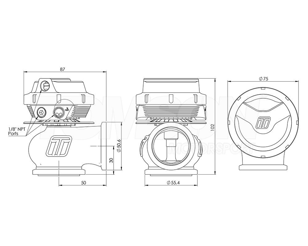 A direct fit upgrade to all Gen4 Turbosmart wastegates and feature our unique collar-locking system, variable actuator cap and base for easy, 360-degree optional routing of reference hoses, strap-type V-band clamps, optional liquid-cooling provision, 1/8″ NPT reference ports and are provided with the full range of available springs.