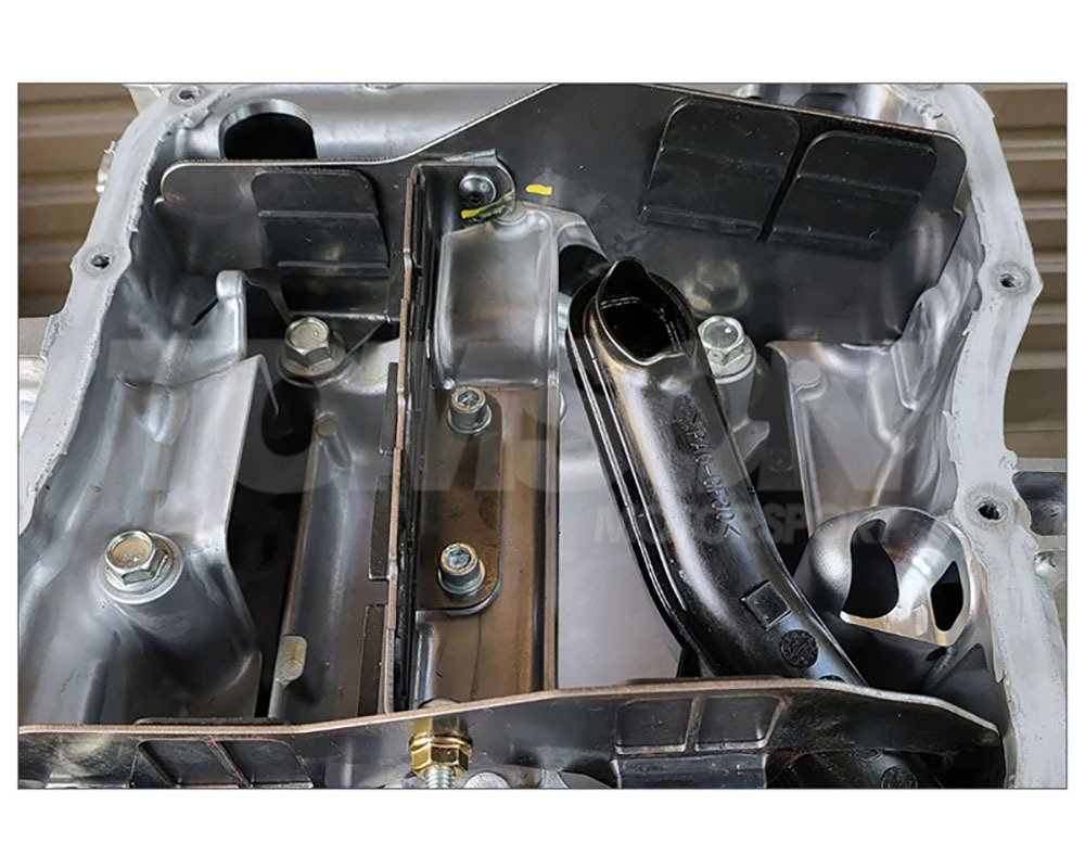 Note: Some clearancing may be needed between the plates and the oil pan. A tight clearance is a must to avoid oil travelling underneath the baffle.