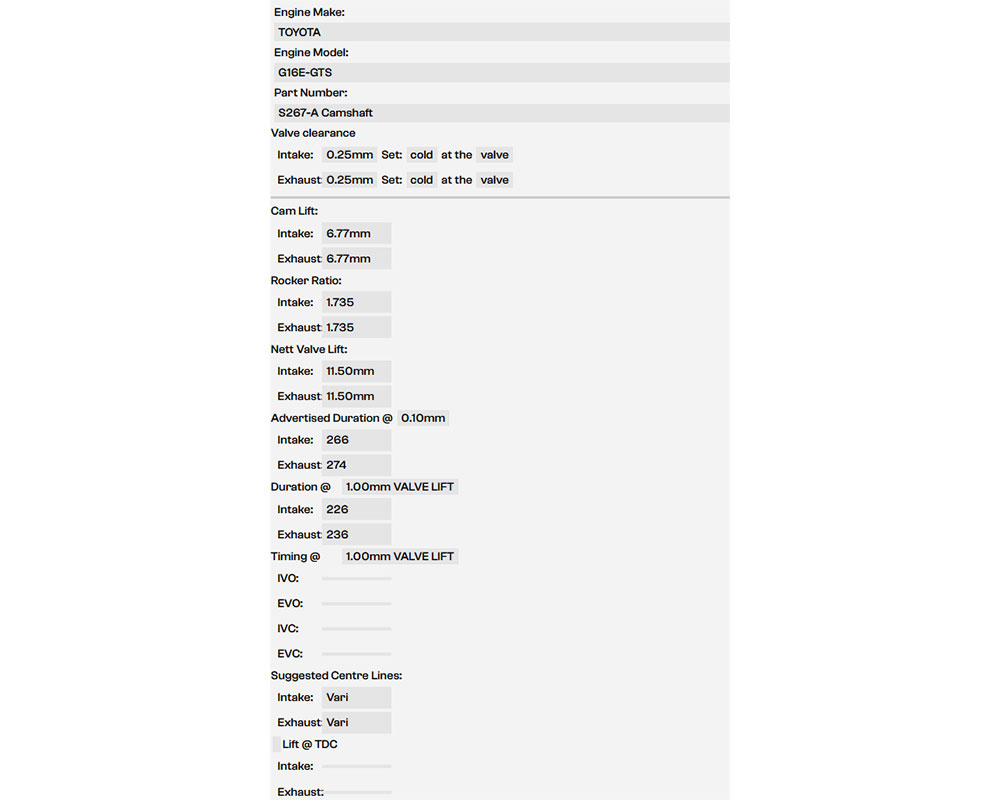 Stage 1 performance solid lifter conversion cams. Ideal for engines with turbo upgrade 48-54mm, 350-500hp. Requires valve spring upgrade. Engine speed up to 8000rpm and 30psi boost pressure when matched with our spring kit. Kelford Cams recommend KVS264 spring and retainer kit. Kelford Cams recommends fitting the Destoj Auto Centre solid lifter conversion kit RR-G16E-SOLID with these cams.