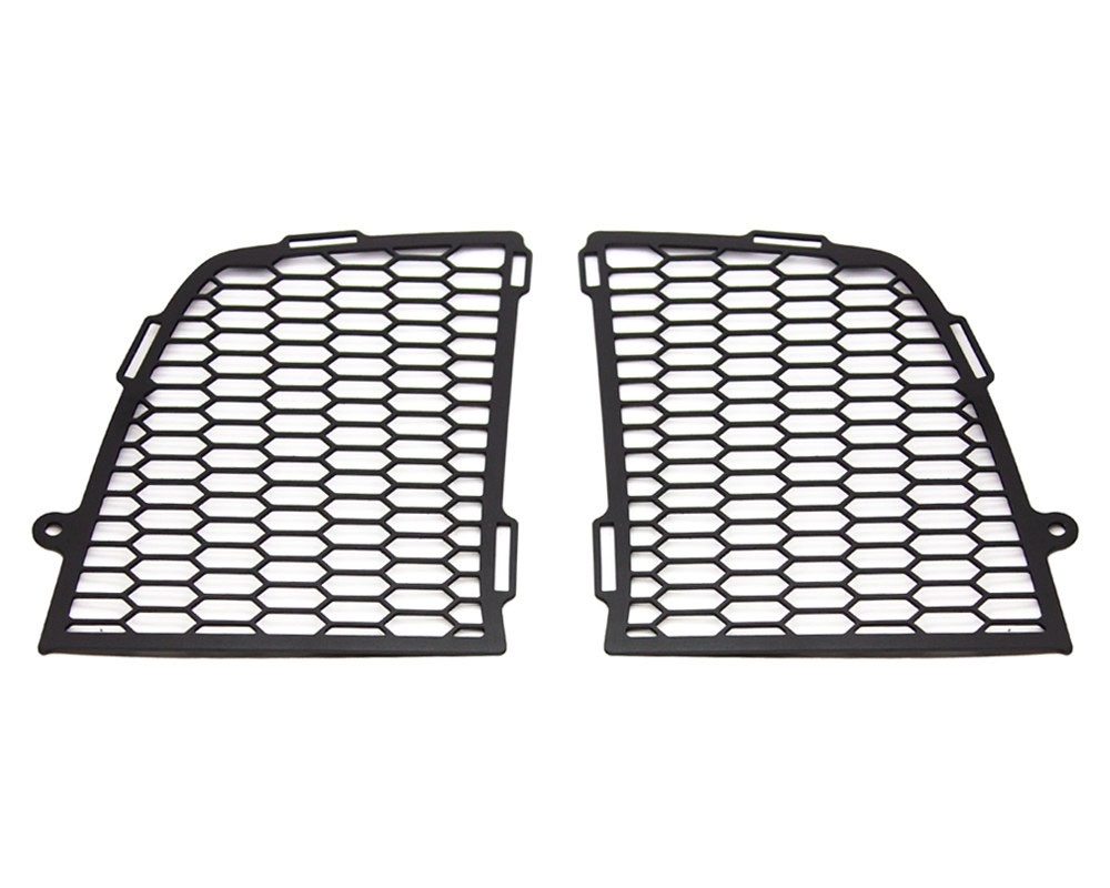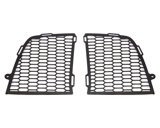 These mesh grilles are made from 2mm laser cut aluminium and are finished in a high-quality black powder coat. They match the design of the centre grille mesh and offer much better protection for the expensive radiators.