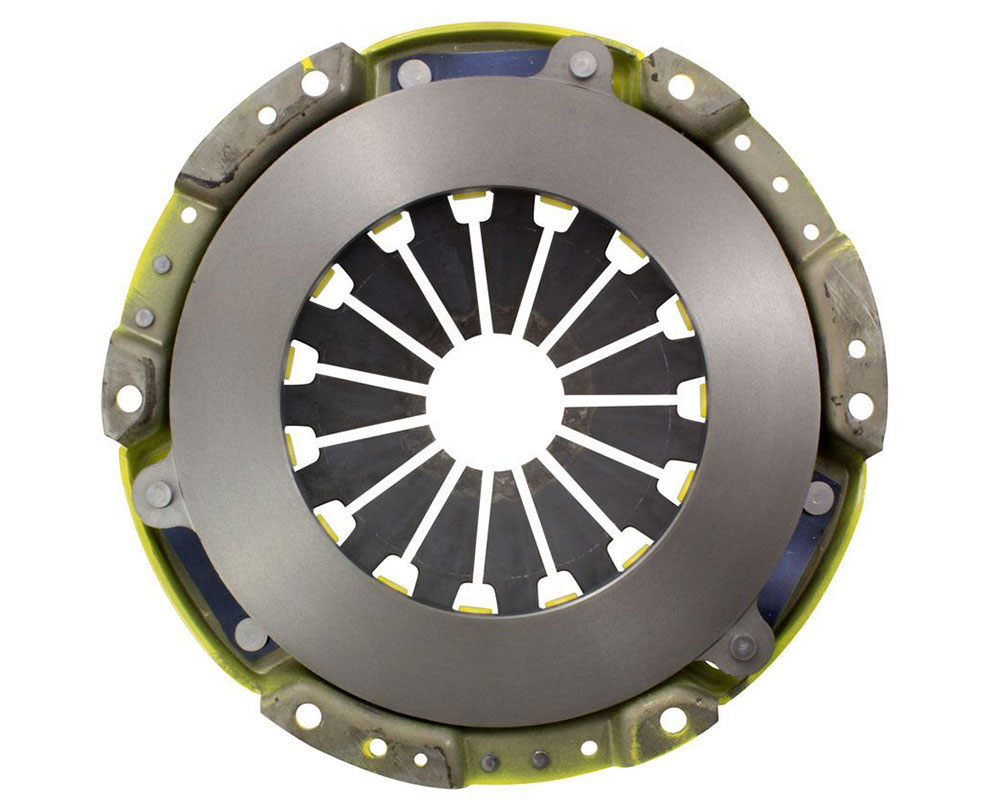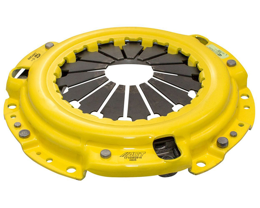 H026 pressure plate features an exclusive diaphragm design to increase clamp load, reduce deflection and maximize clutch life. All ACT diaphragms endure a four-stage, heat-treating process for unparalleled performance. ACT pressure plates have precision cover stampings to provide rigidity and consistency. ACT's Heavy Duty pressure plates increase clamp load by 20 to 50 percent. The Heavy Duty pressure plates are recommended for use with a street or race disc.| Feel | Light to moderate pedal effort, positive engagement |