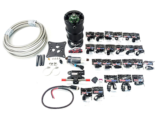 Upgraded your turbocharger and running out of fuel? Our surge tank kit includes almost everything you need to supply your port injectors enough fuel. With the option of fitting a single Walbro 460 or 525 fuel pump our kit is E85 compatible using Speedflow Australia PTFE braided fuel lines and fittings.