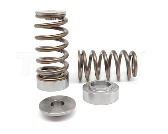 Komplet sportowych sprężynek, podkładek pod sprężynki i tytanowych talerzyków firmy Kelford Cams. Zalecane jest stosowanie wzmocnionych sprężynek powyżej 6500 obr/min.