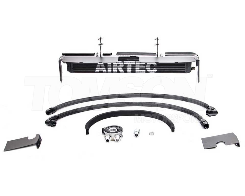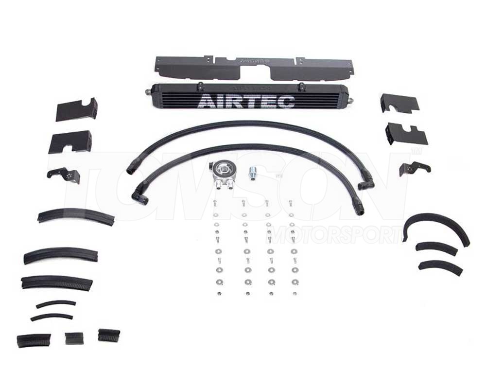 The package includes a large AIRTEC Motorsport oil cooler with ducting, bespoke laser-cut and powder-coated brackets, high-quality braided hose lines with Aerotec fittings, and all fixtures, including instructions, for a simple bolt-on installation.
