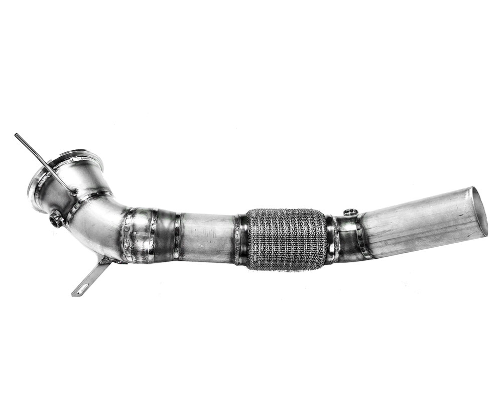 Downpipe Tomson Motorsport bez katalizatora i izolacji termicznej. Kompatybilny z wydechami XFORCE i innymi z wyjściem 76 mm.