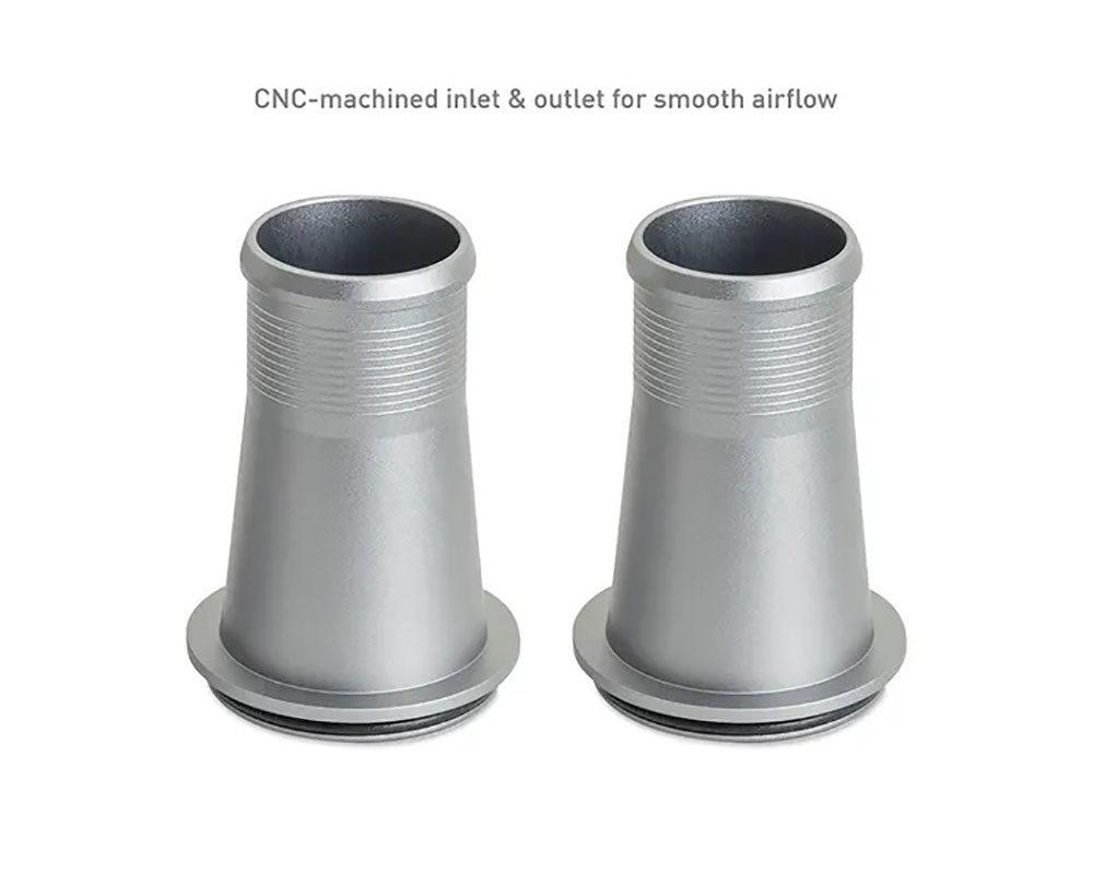 - CNC-machined inlet/outlet for smooth airflow entry into intercooler