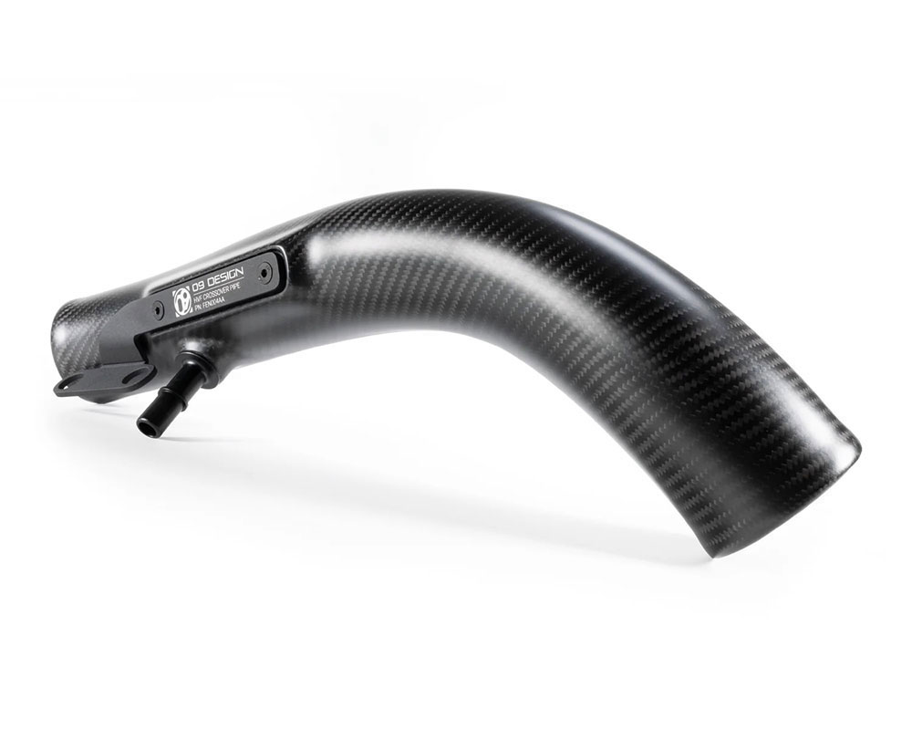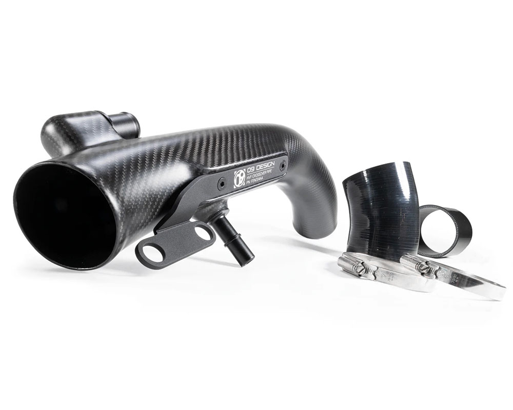 The ZERONINE DESIGN HFW (High Volume Flow) carbon fibre crossover pipe replaces the OE unit with a free-er flowing, heat-resistant unit which not only boosts airflow, but also significantly enhances engine bay aesthetics and induction noise.