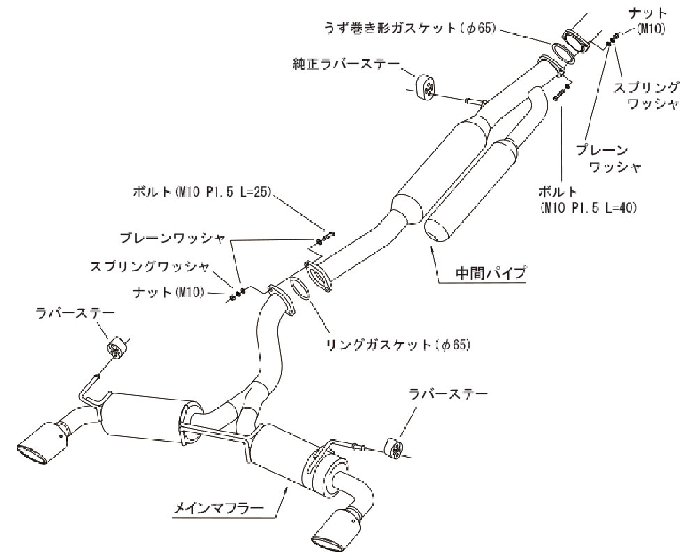 By using thin stainless-steel material for the pipes and silencers, a weight reduction of approximately 23% compared to the stock exhaust system has been achieved. (Stock: 12.4kg, Spec L II: 9.6kg)